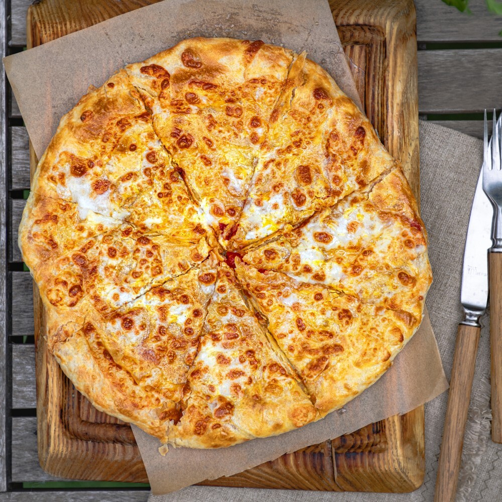 Классическая круглая форма с сыром сулугуни внутри и снаружи